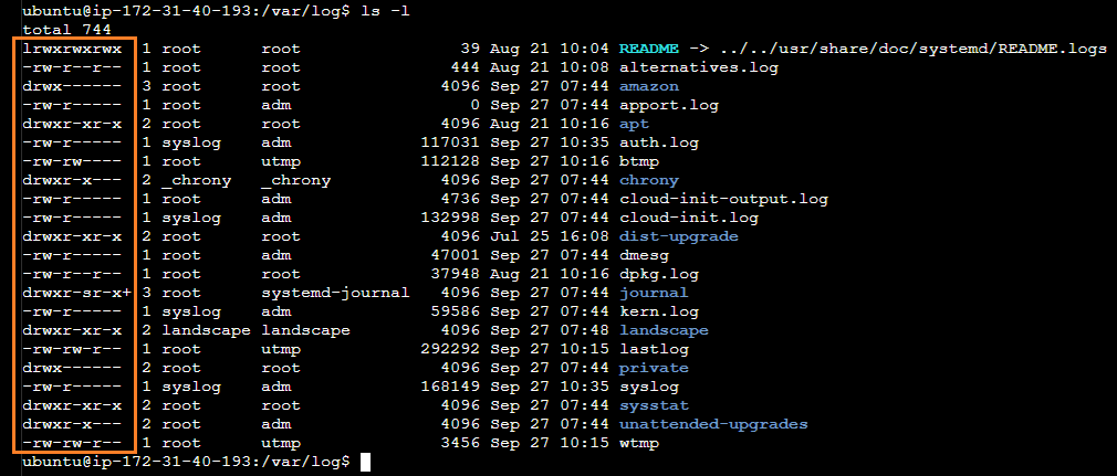 - @ 뒤에 있는 값인 ip-172-31-24-185 는 호스트의 이름, 즉 컴퓨터의 이름을 의미한다. 기본 값으로 우리가 대여한 해당 컴퓨터의 IP 주소로 이름이 지어진다.
